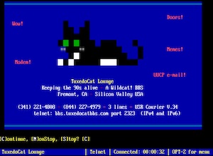 Telnet: bbs.tuxedocatbbs.com port 2323 (IPv4 and IPv6 supported)